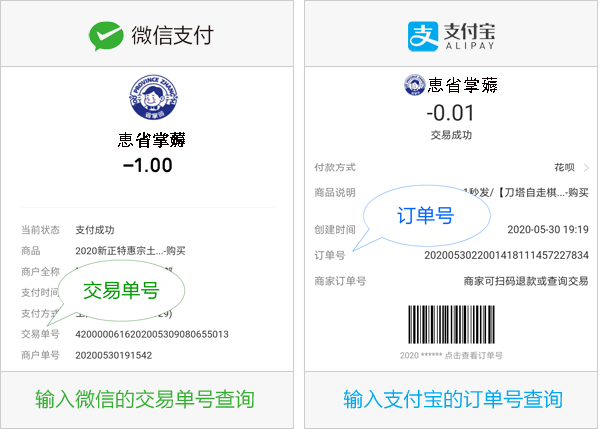 请输入支付宝的交易单号或微信的订单号